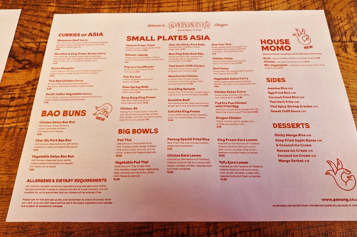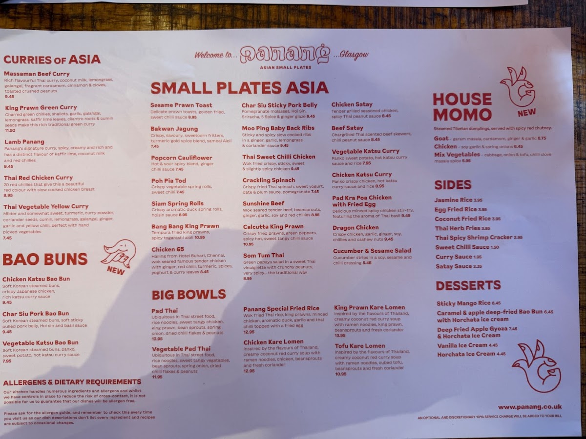 At Panang, we believe in crafting memorable dining experiences that blend authentic flavors with a warm, inviting atmosphere. Nestled in the heart of Glasgow, our restaurant is convenient for locals and travelers alike, just steps from the train station. Our menu features delightful small plates, showcasing everything from sweet and spicy bang bang king prawns to savory bao buns filled with juicy pork and chicken katsu. Patrons rave about our fresh ingredients, friendly service, and the thoughtfulness behind our recommendations tailored to your tastes. At Panang, every dish tells a story, and we invite you to create your own delightful moments with us.